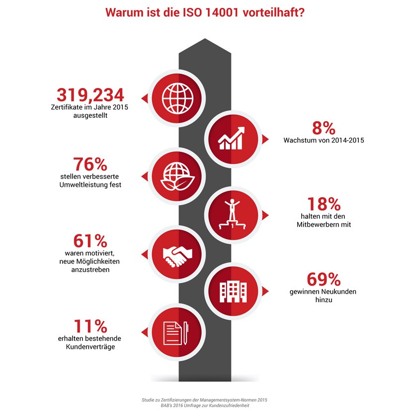 Umweltmanagement sollte für jedes Unternehmen, unabhängig von ihrer Größe oder Branche, eine Priorität sein. Themen wie Klimawandel, Abbau der Ozonschicht, Luftverschmutzung, Boden- und Grundwasserverunreinigung sowie die Entsorgung gefährlicher Abfälle sollten die Hauptanliegen von Regierungen, Industrie und Öffentlichkeit auf globaler Ebene sein. ISO 14001 gibt Richtlinien vor, wie Strategien und Verfahren festgelegt werden können, die zu einer besseren Umweltleistung führen. Diese Richtlinien helfen Ihnen bei der Erhaltung und Kontrolle der Umweltauswirkungen und der Einhaltung gesetzlicher Vorschriften. Mit der Zertifizierung nach ISO 14001 beweisen Sie Ihren Kunden und Interessenvertretern, dass Ihnen die Umweltverpflichtungen bekannt sind. Darüber hinaus implementieren Sie ein System, das nicht nur die Umweltbelastungen reduziert, sondern auch die Kosten senkt und die Effizienz innerhalb des Unternehmens steigert. Mit ISO 14001 wird Ihr Unternehmen weltweit anerkannt und kann so nachhaltig wachsen.