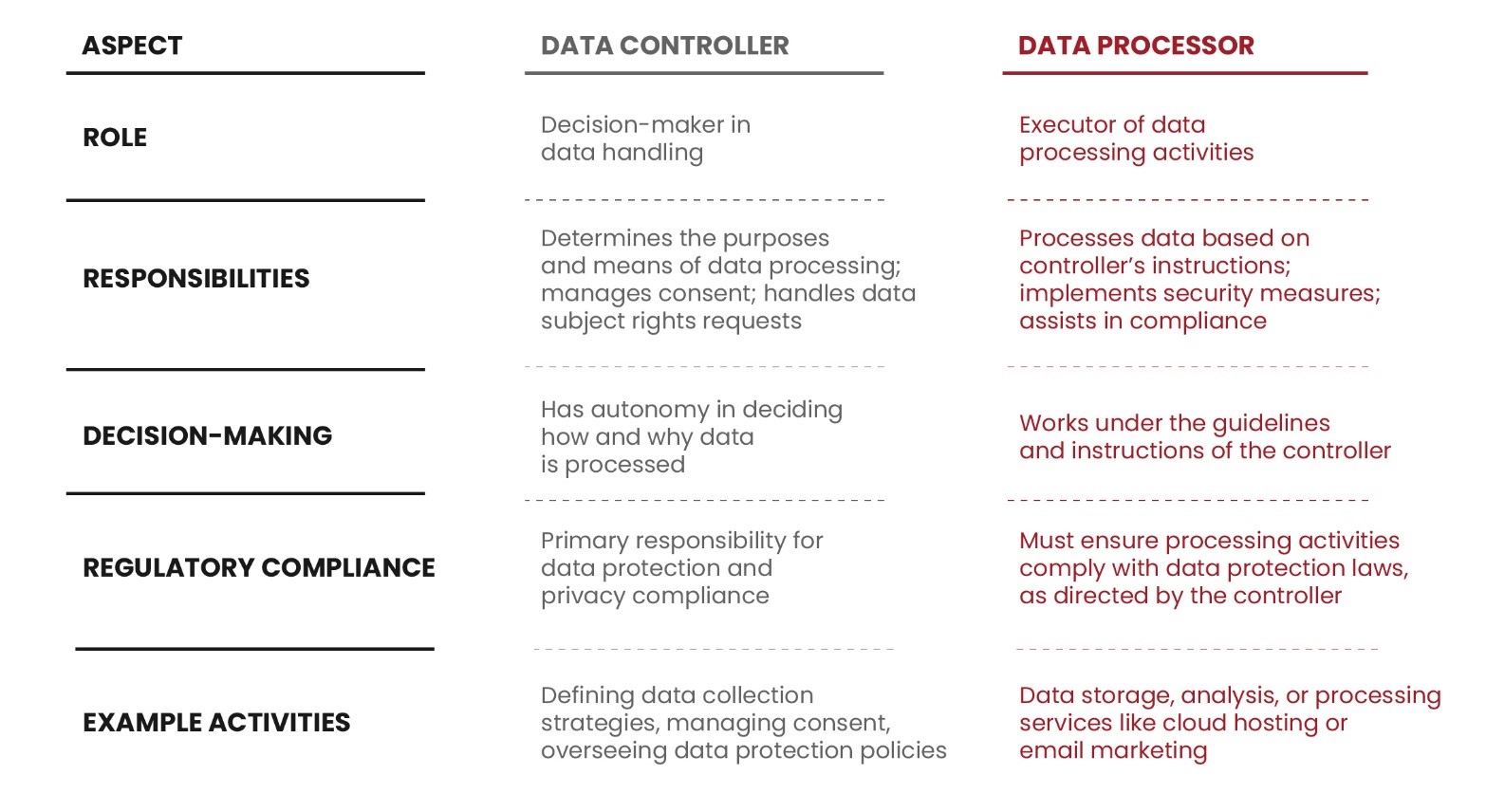 The roles of a data controller and a data processor, though interrelated, are distinctly different in the realm of data privacy.