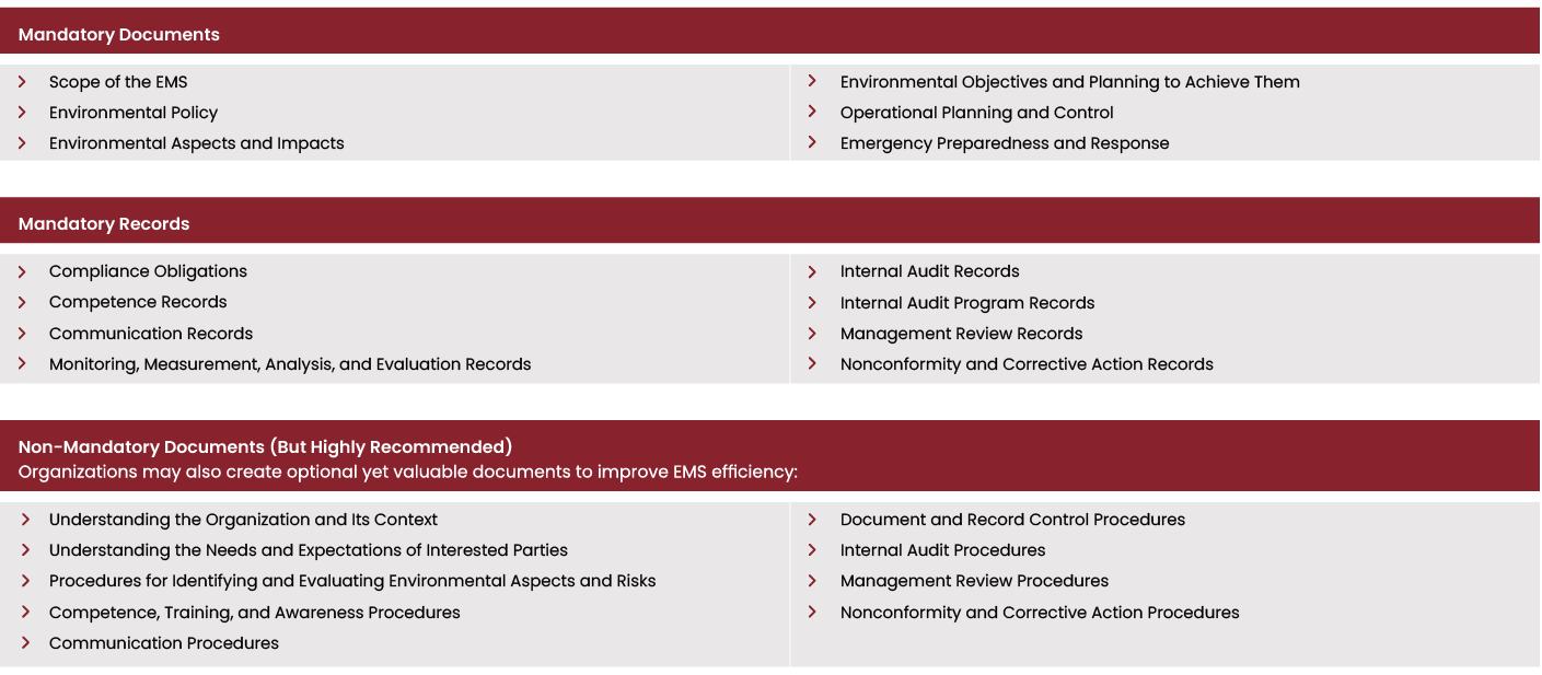 Ensuring a well-structured and effective EMS requires documentation to follow a clear format.