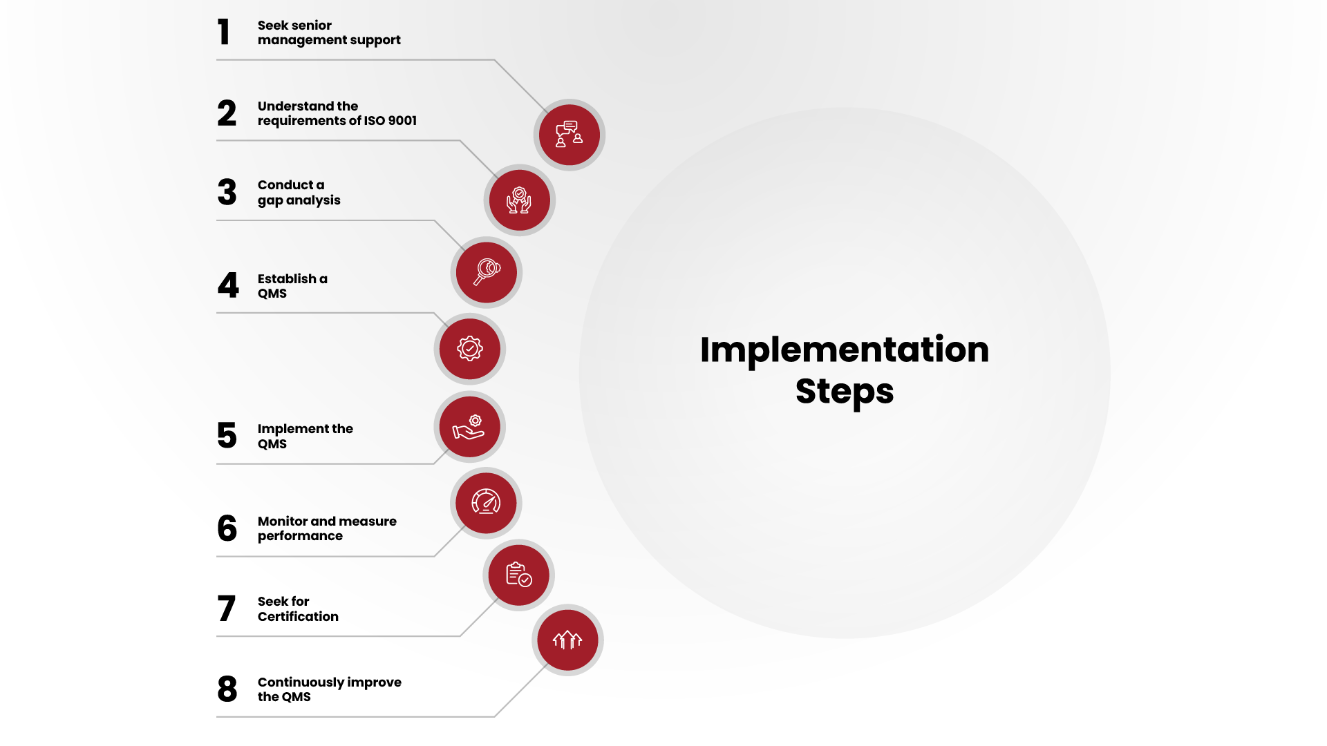 The implementation of ISO 9001 requires the support and commitment of senior management and their active involvement in the process. They need to understand the benefits of ISO 9001 and then allocate the necessary resources for its implementation.