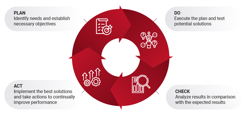 This continual improvement approach was first developed and used in the 1950s by Dr. William Edwards Deming and since then it gained popularity and is now used by many organizations. Originally, the concept used by Deming was Plan-Do-Study-Act (PDSA), a systematic method used to test and study the implemented changes. The PDSA cycle led to the distinguished process of the PDCA cycle.