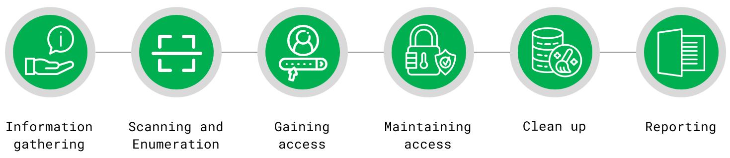 There are six important phases to conduct a pen test.