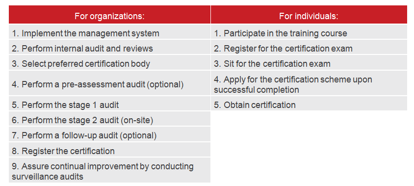 By following a structured and effective methodology, an organization can be sure it covers all minimum requirements for the implementation of a management system. Whatever methodology used, the organization must adapt it to its particular context (requirements, size of the organization, scope, objectives, etc…) and not apply it like a cookbook.