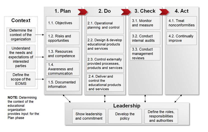 Figure 1: ISO 21001 structure in the Plan-Do-Check-Act cycle