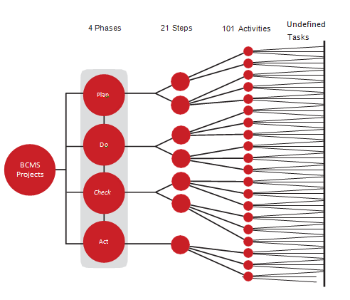 IMS2 is based on the PDCA cycle divided into four phases: Plan, Do, Check and Act. Each phase has between 2 and 8 steps for a total of 21 steps. In turn, these steps are divided into 101 activities and tasks. This ‘Practical Guide’ considers the key phases in your implementation project from start to finish and suggests the appropriate ‘best practice’ for each one, while directing you to further helpful resources as you embark on your ISO 22301 journey.