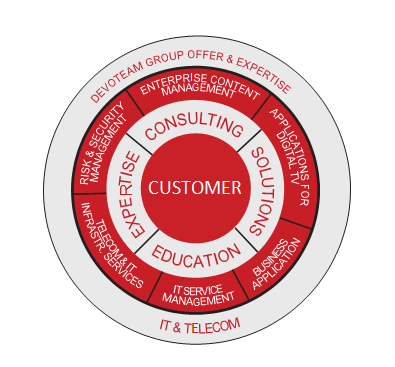 Depending on customer’s needs, Devoteam NV/SA in Belgium can offer its experience through consultancy; expertise, education as well as by providing complete solutions. Devoteam NV/SA has a long experience in doing projects and quality assurance. Devoteam has several Prince2 certified project managers and an ISO 9001:2008 certificate.