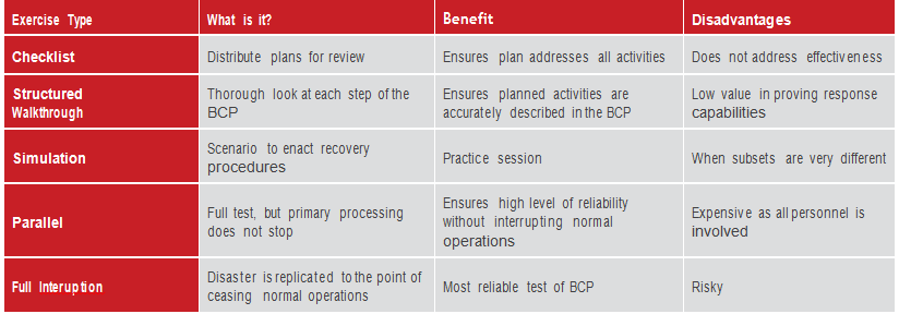 Exercising and testing: To ensure that business continuity procedures are consistent with its business continuity objectives, an organization will have to test them regularly. Exercising and testing are the processes of validating business continuity plans and procedures to ensure the selected strategies are capable of providing response and recovery results within the timeframes agreed to by management.