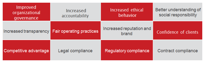 Increased social responsible actions through ethical behavior;