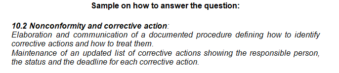 Improvement of ISMS consists of corrective actions. They should fulfill the requirements as listed in the table below:
