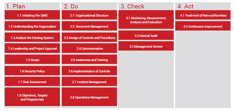 IMS2 is based on the PDCA cycle which is divided into four phases: Plan, Do, Check and Act.